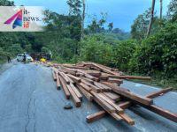 Terbalik, Perjalanan Truk Pengangkut Kayu Ilegal Berhenti di Kelay