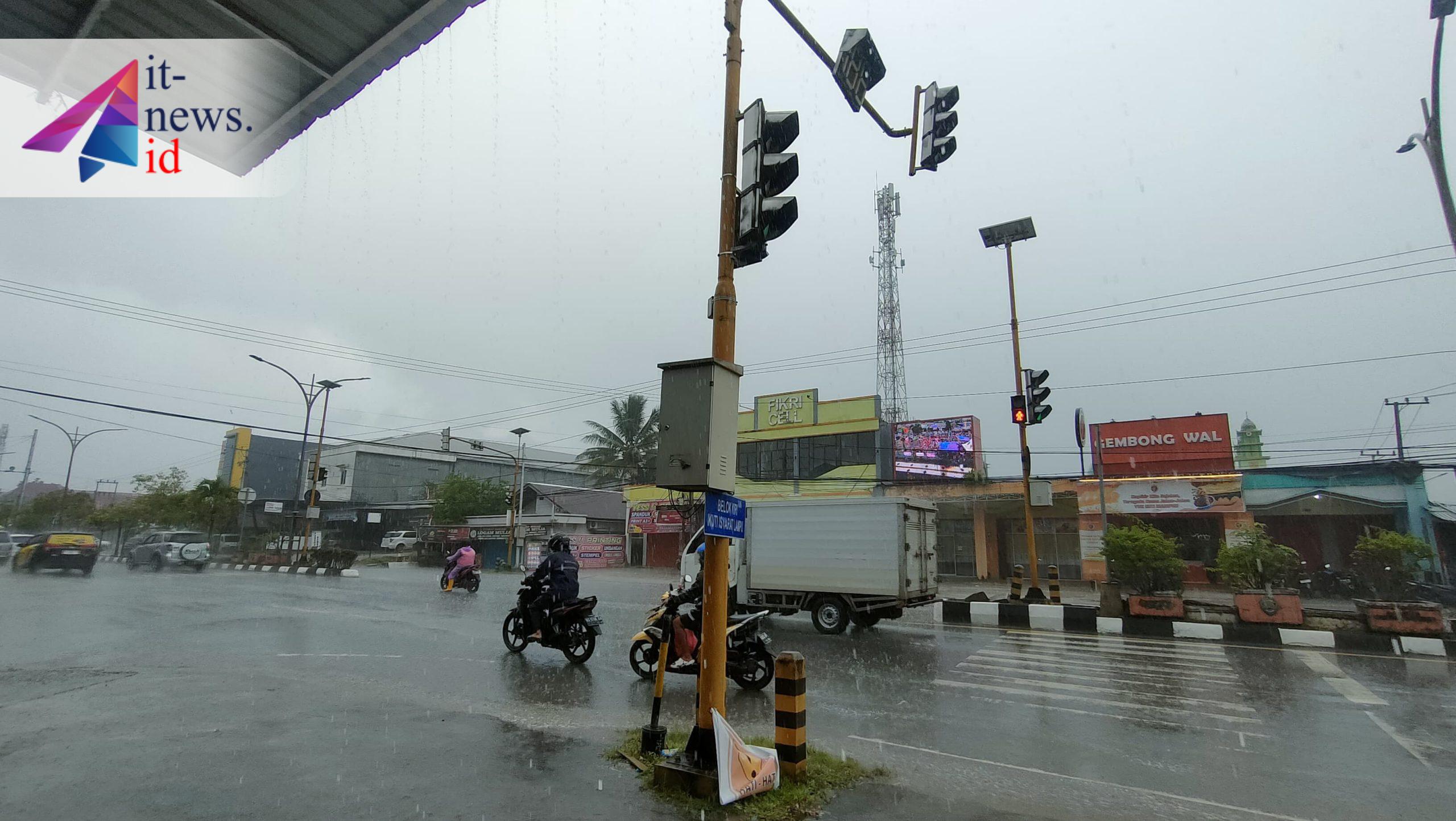 TANJUNG SELOR – Hujan dengan intensitas sedang hingga lebat mengguyur sejumlah wilayah di Kabupaten Bulungan, Kalimantan Utara, sejak Jumat pagi (3/10). Berdasarkan pantauan, hujan mulai turun sekitar pukul 07.20 WITA dan melanda beberapa ruas jalan utama di Tanjung Selor, seperti Jalan Sengkawit, Jalan Durian, Jeruk, hingga Semangka. Cuaca buruk juga disertai kilat dan petir yang cukup intens.