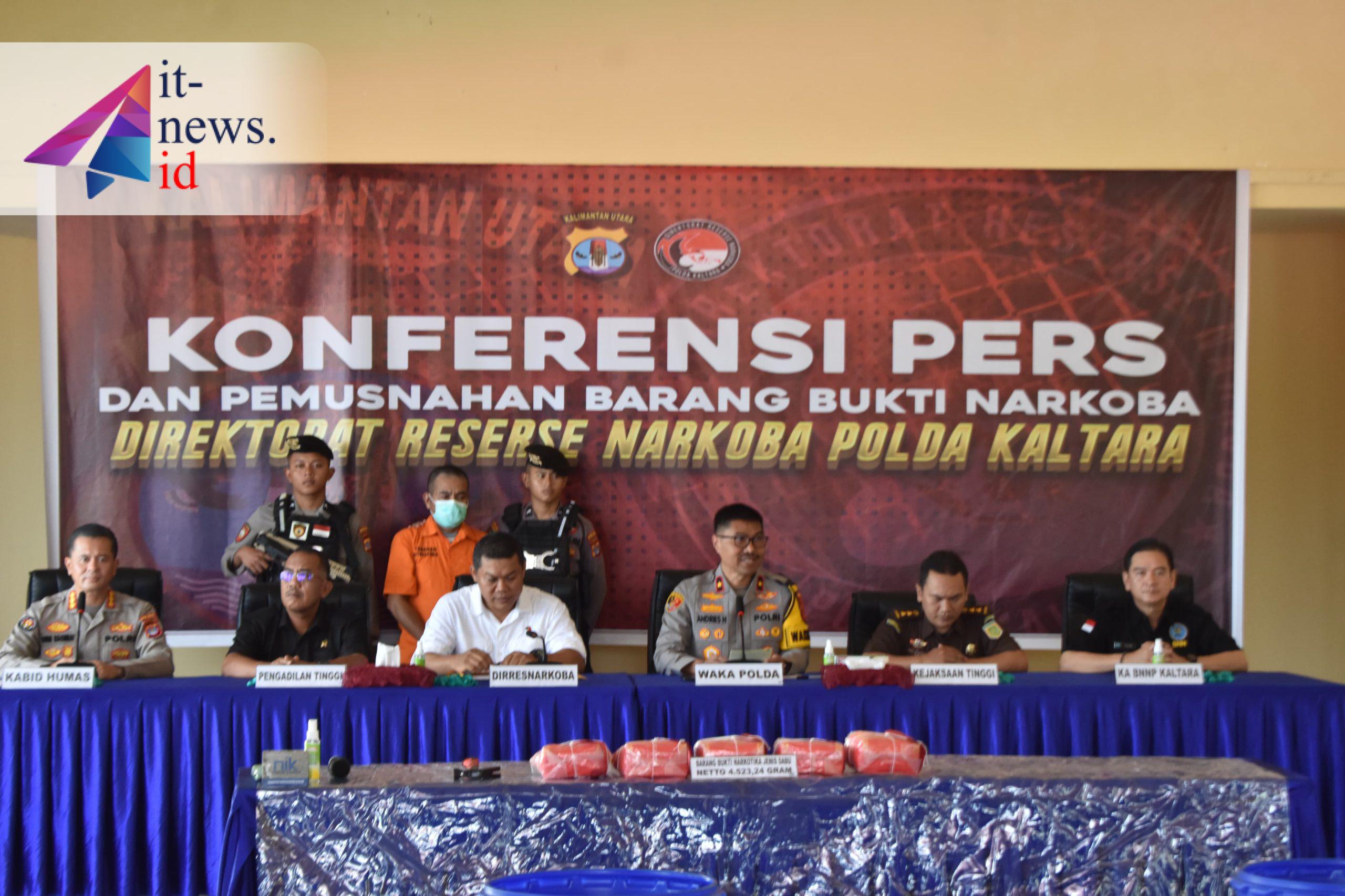 TANJUNG SELOR – Upaya penyelundupan lebih dari 4,5 kilogram sabu yang rencananya akan diedarkan ke Pulau Sulawesi akhirnya berhasil digagalkan Polda Kalimantan Utara. Barang bukti tersebut kemudian dimusnahkan pada Rabu (25/11) di Markas Polda Kaltara, sebagai bentuk komitmen aparat dalam memerangi peredaran narkoba di wilayah perbatasan.