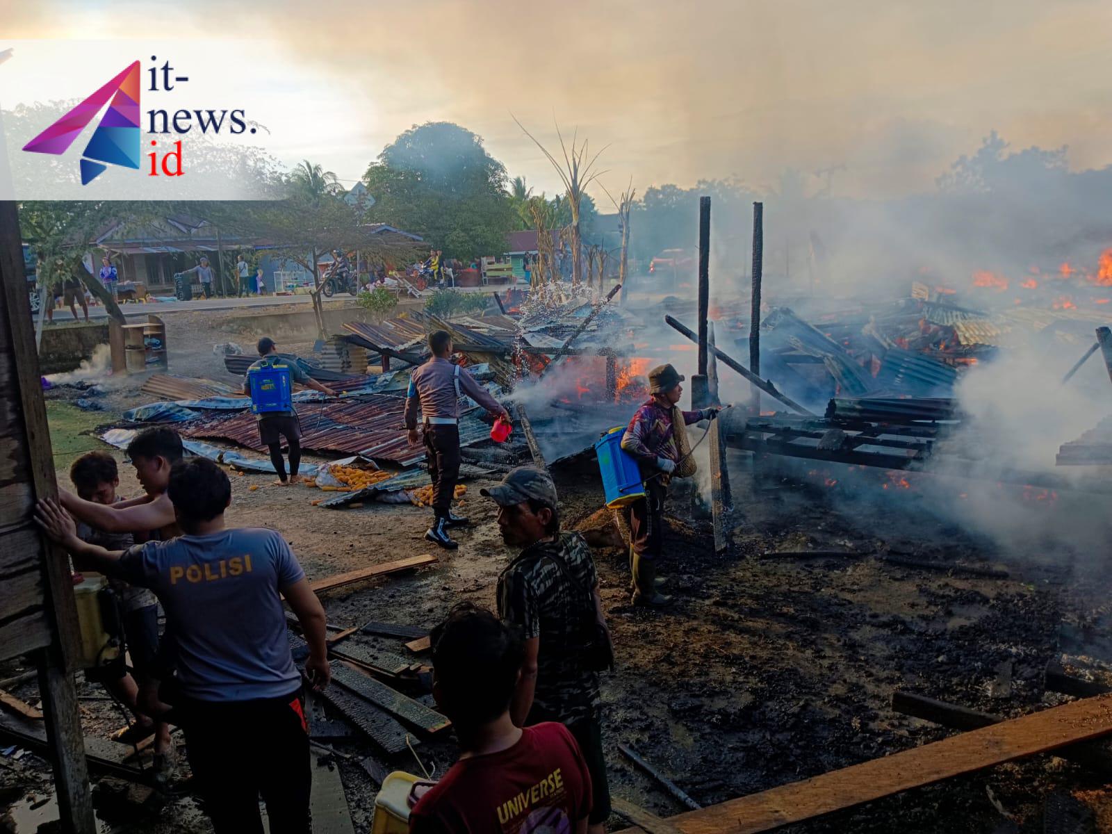 Adapun lima rumah yang terbakar diketahui milik Ngau (45), Alfius, Jainudin, Bisam, dan Aris, yang seluruhnya merupakan warga Sungai Uma, Desa Pimping.