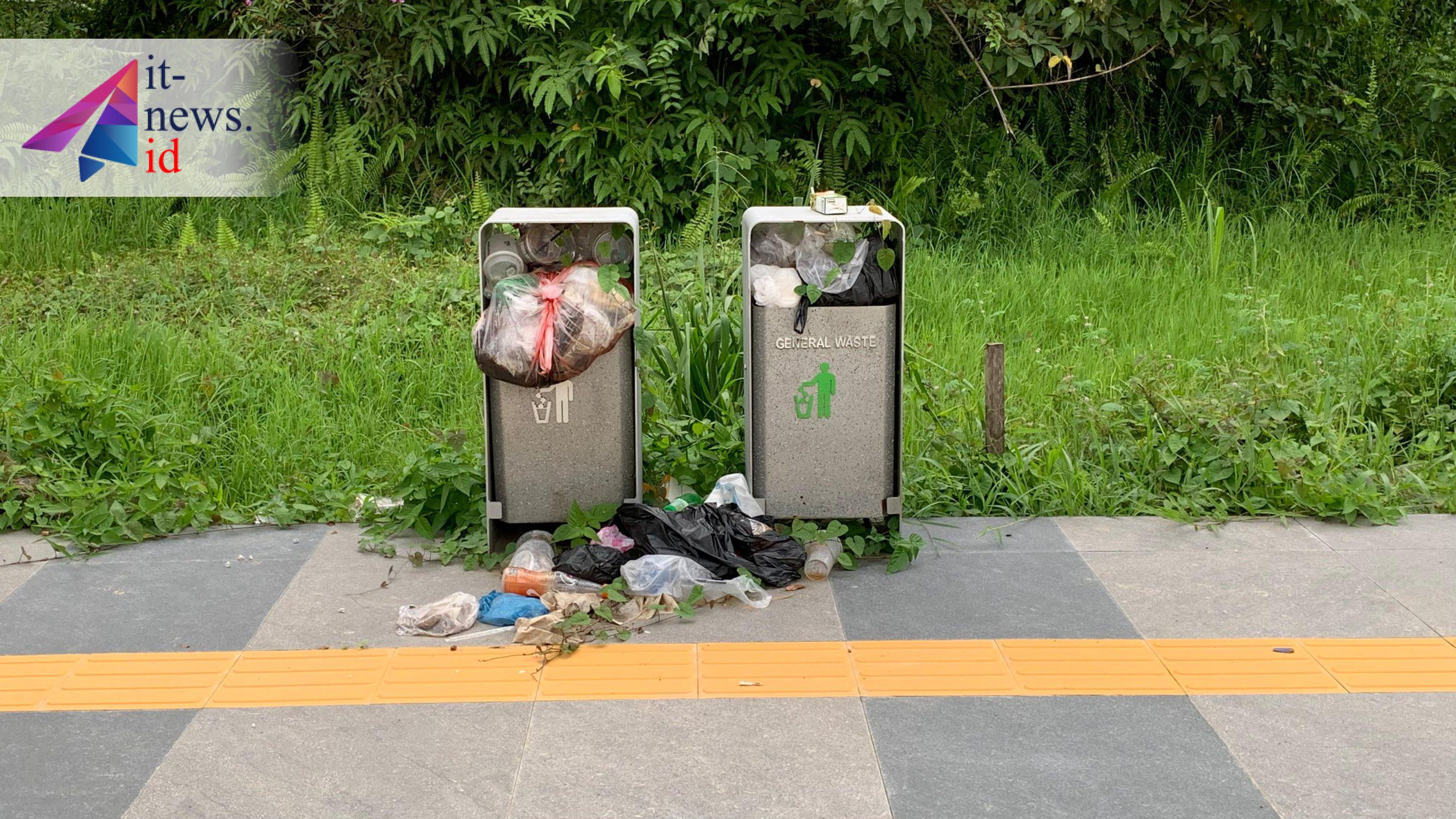 Pantauan di lokasi menunjukkan banyak sampah plastik besar yang tidak sesuai dengan kapasitas tong sampah trotoar. Perilaku “curang” ini membuat sampah cepat menumpuk dan berceceran ke jalan.