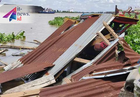 “Saat itu hujan deras dan angin sangat kencang. Tongkang yang bersandar tiba-tiba bergerak terbawa arus dan angin, lalu menghantam kapal ketek dan langsung menghancurkan rumah kami,” ujarnya.
